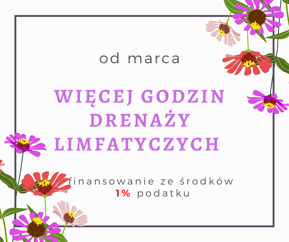 Wiosna wisi w powietrzu, a my mamy dla Was cudowne wieści. Od marca ruszamy z dodatkowymi godzinami drenaży limfatycznych oraz innym masaży, prowadzonych przez Alicję.