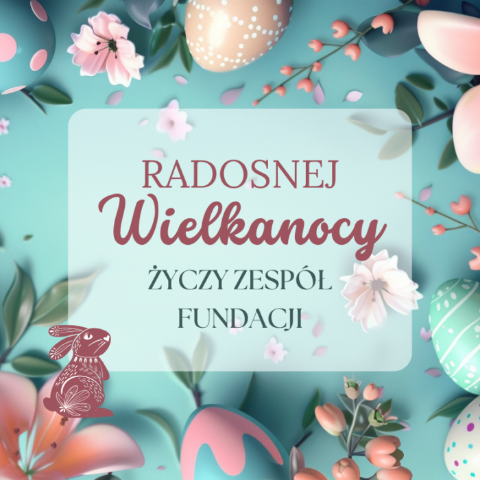 Życzymy Wam, Kochani, aby te Święta Wielkanocne wniosły do Waszych serc wiosenną radość i świeżość, pogodę ducha, spokój, ciepło i nadzieję. Niech ten czas upłynie Wam w gronie rodziny i bliskich Najlepsze życzenia od całego zespołu Fundacji